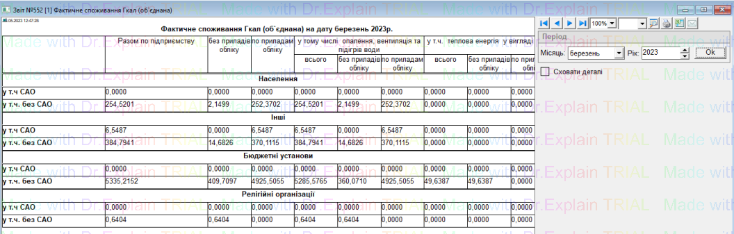 542 Звіт по Гкал та навантаженню по ІТП, ЦТП, САО