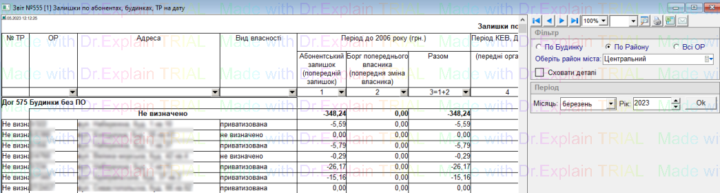 341 Звіт по особових рахунках щодо яких відбулися зміни опалювальної площі в певний період