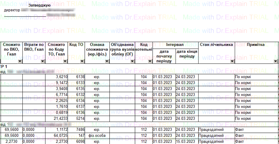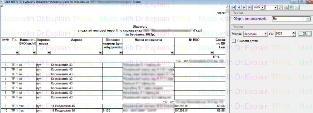 519 Звіт про нарахування за послугу з постачання теплової енергії по періодам