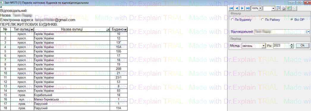 575 Перелік житлових будинків по відповідальним