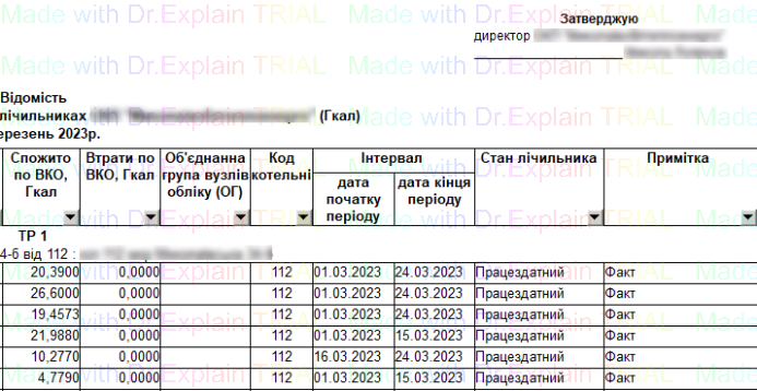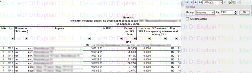 578 Відомість спожитої теплової енергії по будинкових лічильниках