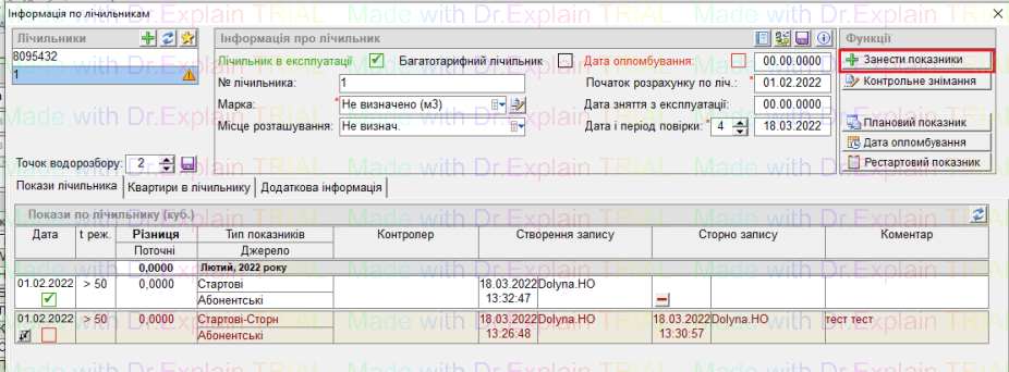 +Занести показники - заведення показника на кінець місяця
