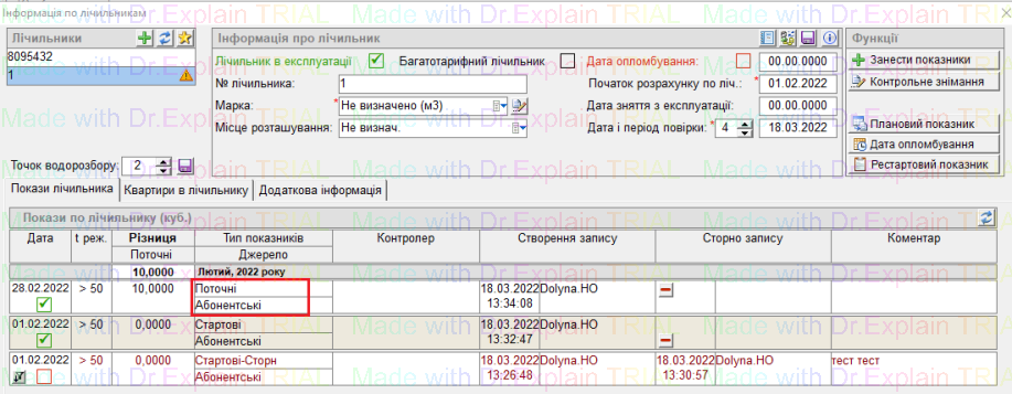 В день контрольнго зйому діє тільки контрольний зйом, якщо на цю ж дату вносити інші показники, вони будуть не зараховані.