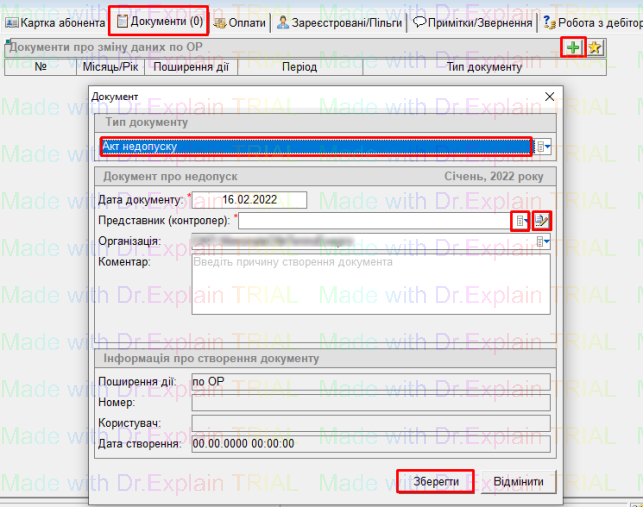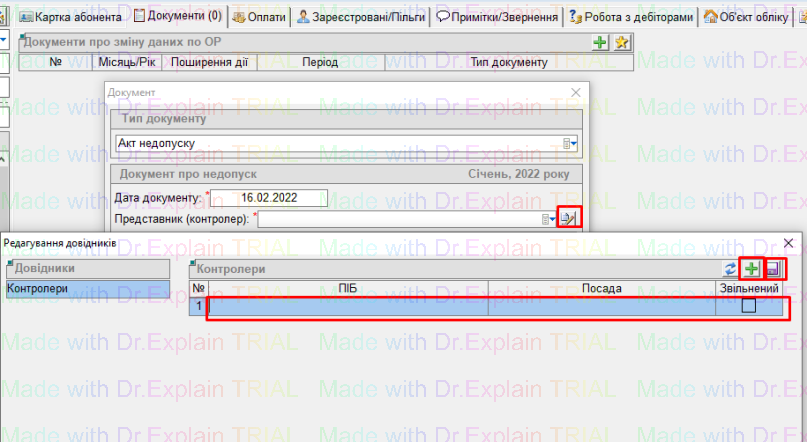- вибрати з довідника Представника(контролера), якщо у списку немає потрібного контролера, його можна додати у довідник, для цього натиснути кнопку "листок з ручкою":