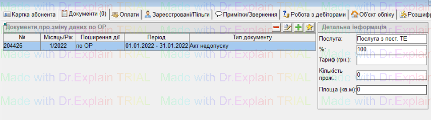 У вікні "Особові рахунки" знайти потрібний ОР, перейти на вкладку "Документи" і натиснути кнопку "+", відкриється вікно “Документ”: