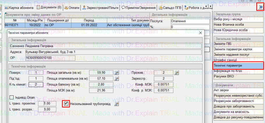 Після заведення документу, у Технічних параметрах буде відображено заведені зміни: