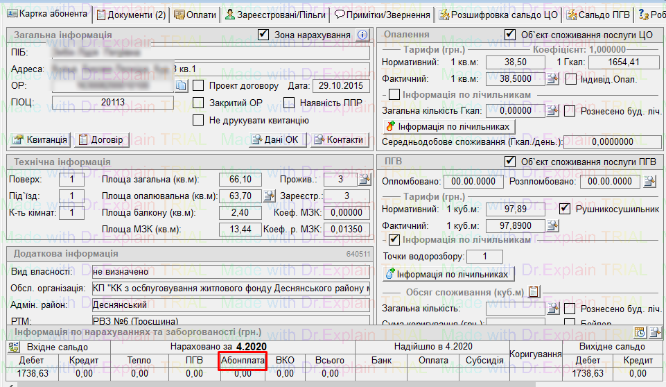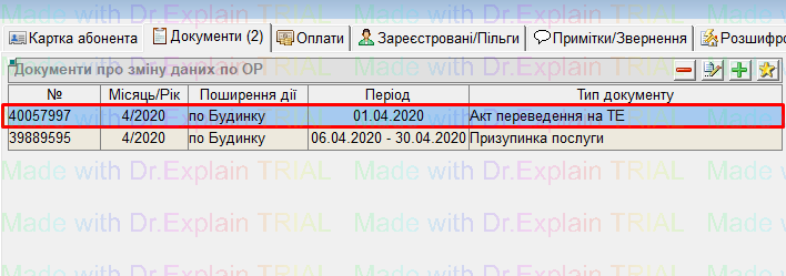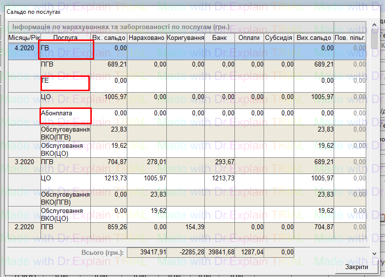 - В сальдо по послугах по ОР з’явиться інформація по послугах: ГВ, ТЕ, Абонплата: