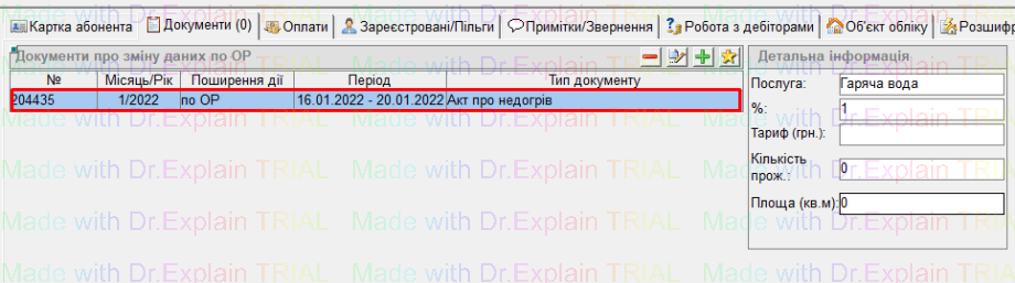 після цього у вкладці "Документи" буде відображений заведений документ "Акт недогрів":