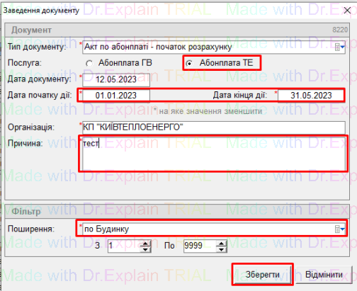 - і на ор будуть проставленні галочки надання послуги відповідно до діапазону дат та поширення дії акту: