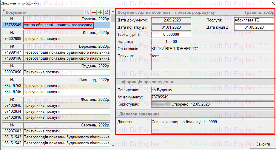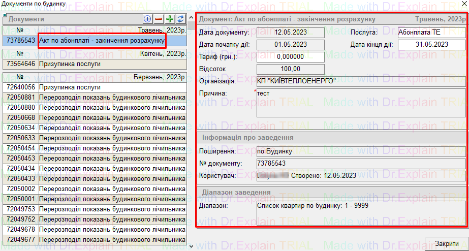 Є можливість заводити акт як по всьому будинку, так і по вибраному діапазону квартир або по РТМ.