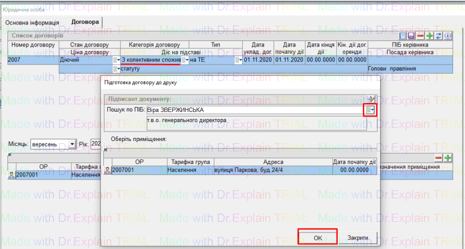 На даному прикладі (вище на зображенні), по Юр особі заведений договір з колективним споживачем, тому у даному випадку буде сформований договір “з колективним споживачем”.