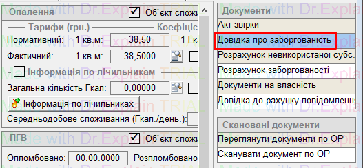 Довідка про заборговність — при виборі цього пункту відкриється вікно: