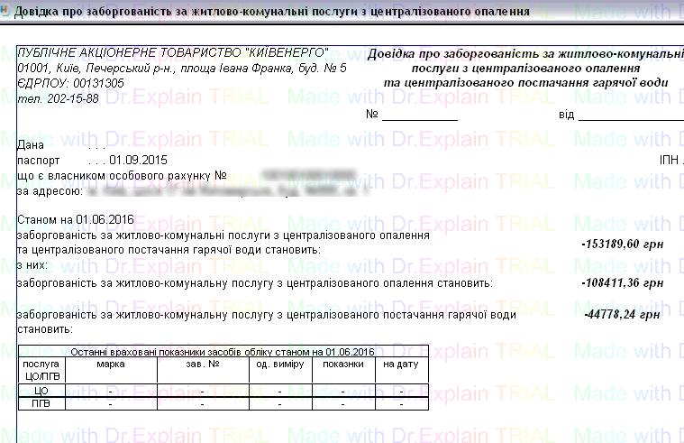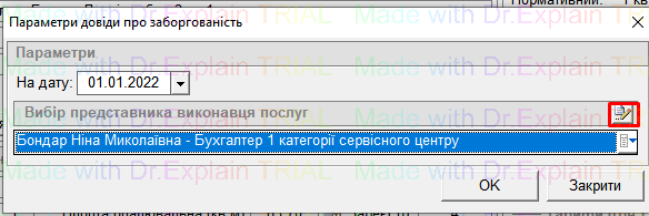 - обрати потрібні параметри, нажати "ОК" і отримаємо "Довідку про заборгованість":