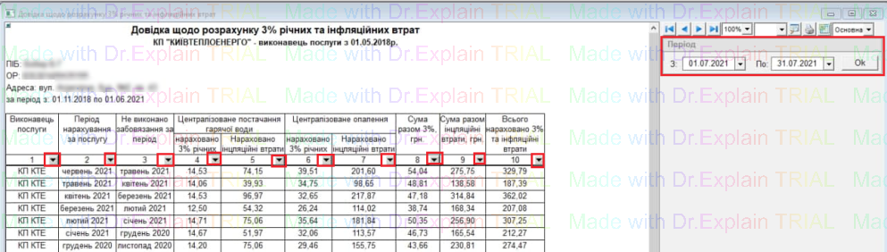 далі можна застосовувати фільтр для вибору Періоду, та Суперфільри до колонок у довідці.