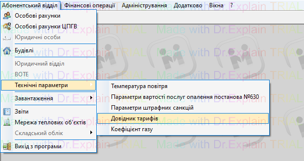 Абонентський відділ—Технічні параметри—Довідник тарифів^