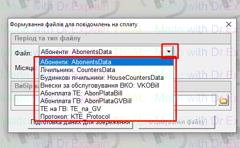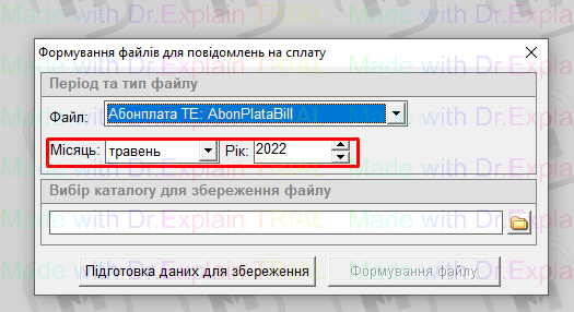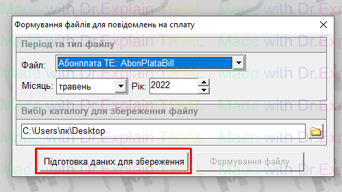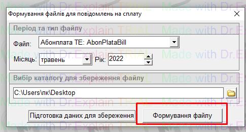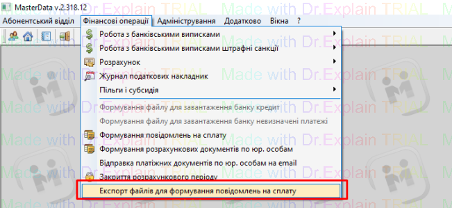 Фінансові операції - Експорт файлів для формування повідомлень на сплату