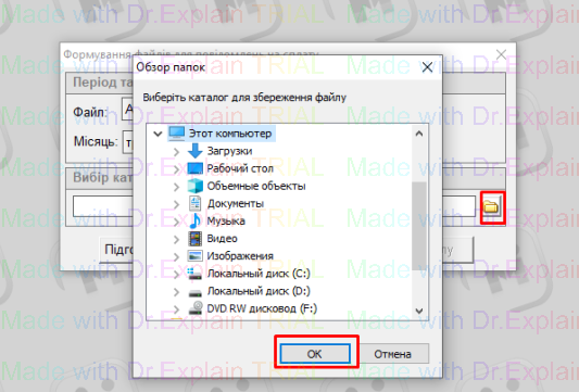 5) Вибрати шлях до папки у яку потрібно зберегти: