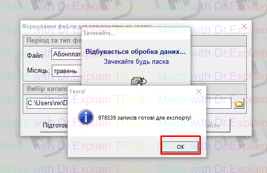 7) Коли висвітиться повідомлення, натиснути «Ок»: