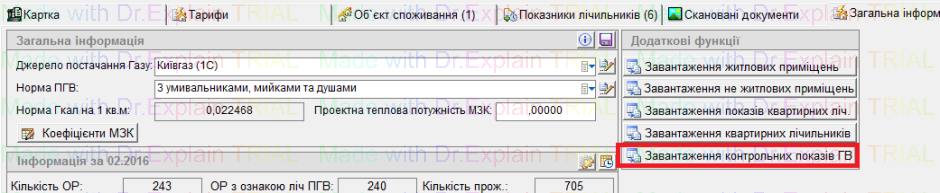 Модуль «Завантаження даних з відомостей контрольних показників лічильника»