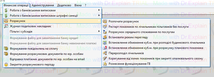 Зміст Функції у меню Розрахунок та Закриття місяця