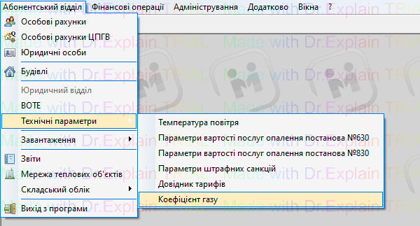 Абонентський відділ — Коефіцієнт газу