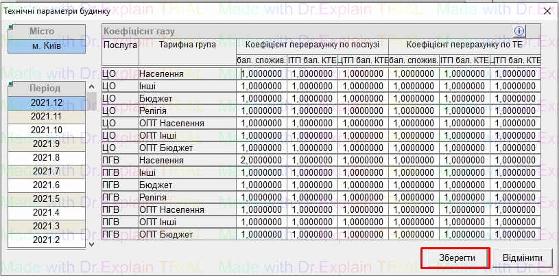 внести коефіцієнти, натиснути “Зберегти”, після цього зменшиться нарахування відносно даного коефіцієнту газу