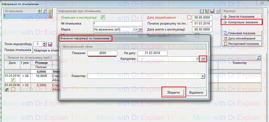 Контрольне знімання - контрольний зйом на дату. Якщо потрібно зняти показники, нажавши відповідну кнопку, відкриється вікно: