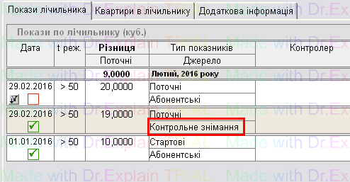 Далі, у показах лічильника з'явиться новий показник, і у колонці "Тип показників/Джерело" буде вказано "Контрольне знімання".