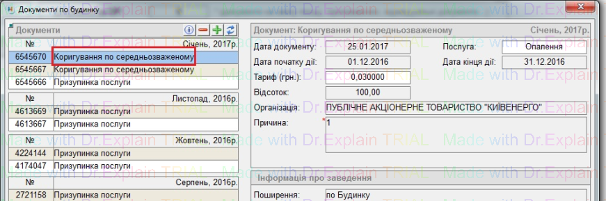 Створений документ відображено у документах по будинку: