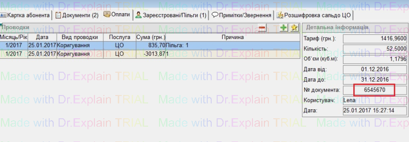 Тут відображені створені проводки по коригуванню, з номером документу
