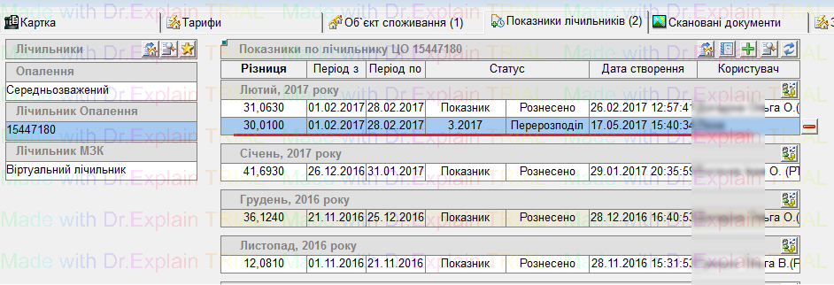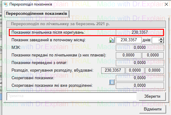 і у "Показниках по лічильнику" буде відображена нова строчка "Редагування-Перерозподіл"