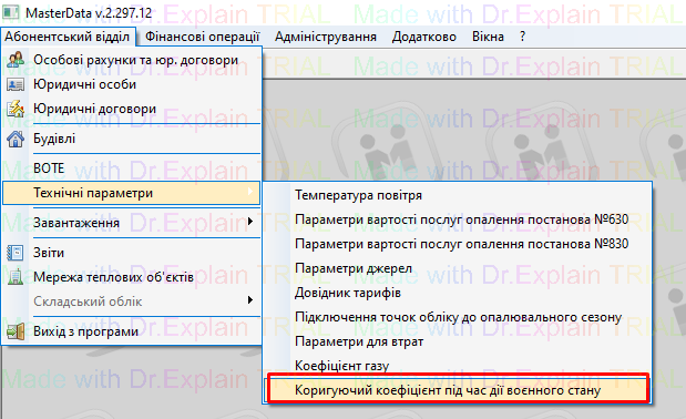 Абонентський відділ — Технічні параметри — Коригуючий коефіцієнт під час дії воєнного стану: