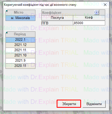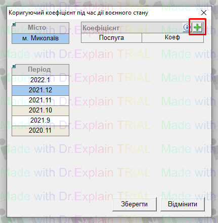 даний коефіцієнт можливо внести тільки у поточний місяць, натиснути “+”, вказати коефіцієнт та натиснути Зберегти: