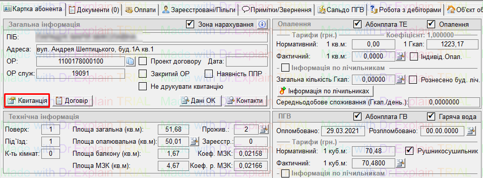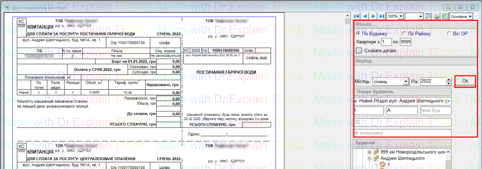 Також можливо сформувати квитанції по будинку/району/або по всім ор.