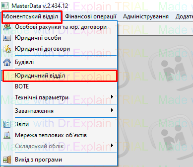 Меню - "Юридичний відділ"