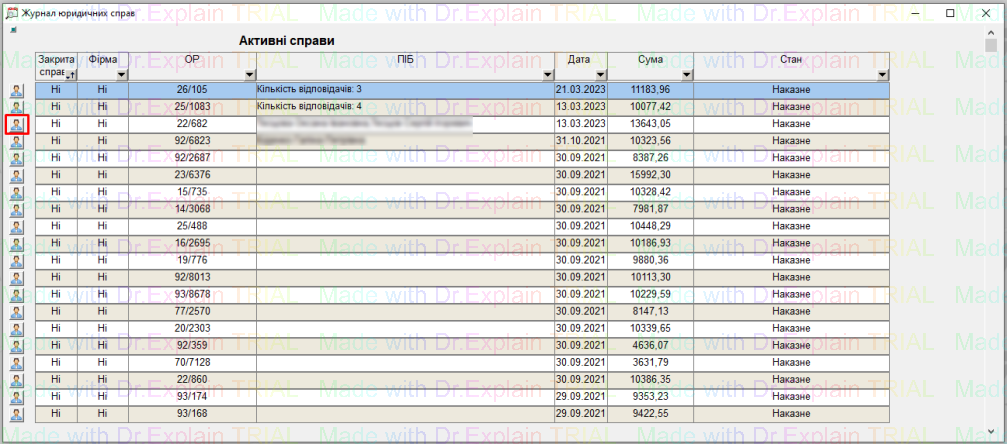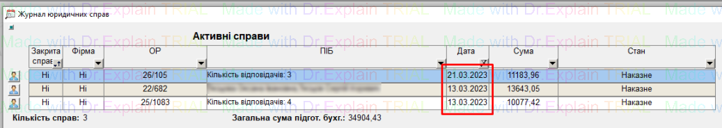 - відображені усі заведені справи та їх статус (у колонці «Стан»);