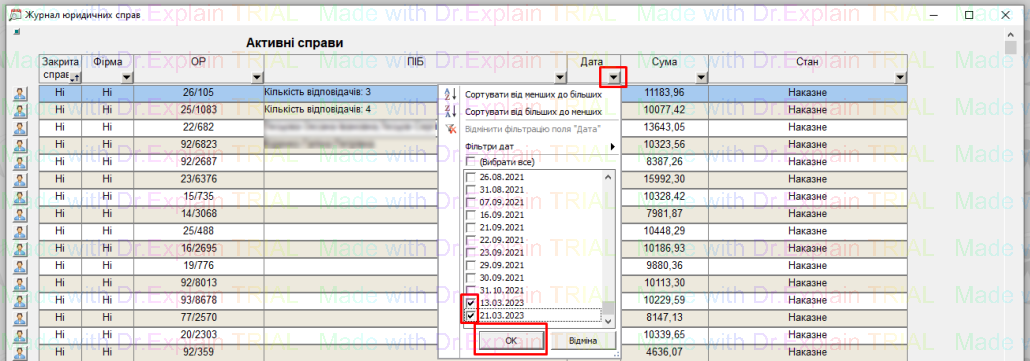 - можливість фільтрувати список справ по Даті, Стану, і т.д.: