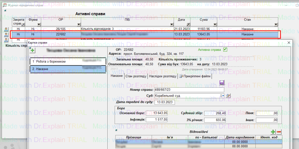 - щоб переглянути деталі по справі, потрібно двічі клацнути лівою клавішею миші по потрібній справі, відкриється вікно «Картка справи»: