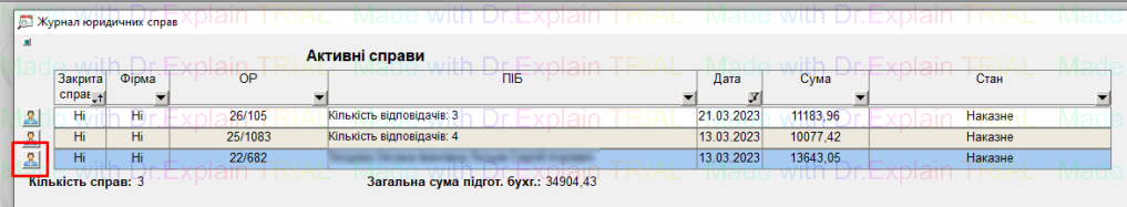 - також можливо перейти на особовий рахунок на якому заведено справу, для цього потрібно клацнути на кнопку «чоловічок» біля потрібної справи: