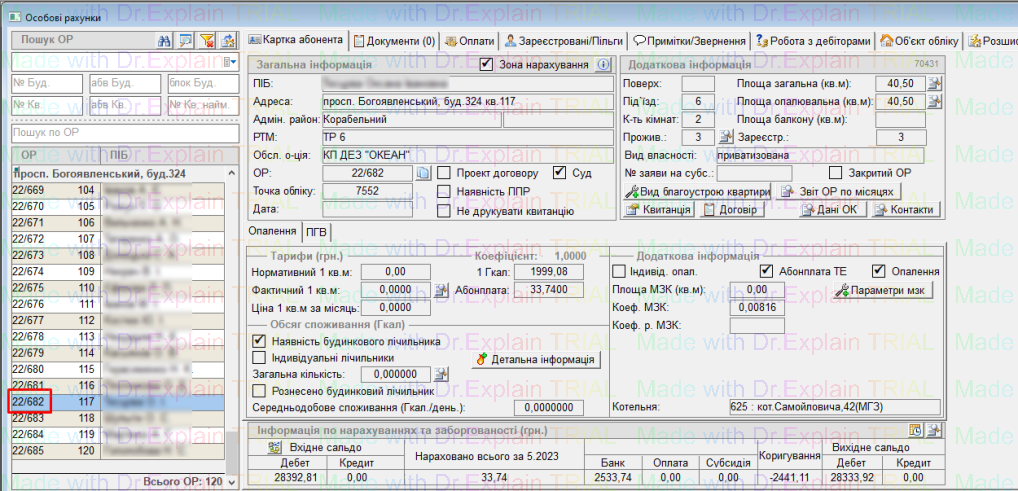 Для перегляду усіх заведених справ по особовим рахункам, перейти у меню: