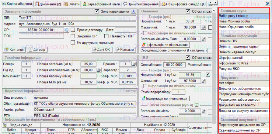 Відкрити необхідній Особовий рахунок: "Абонентський відділ" — "особові рахунки", знайти необхідний ОР, для прикладу: