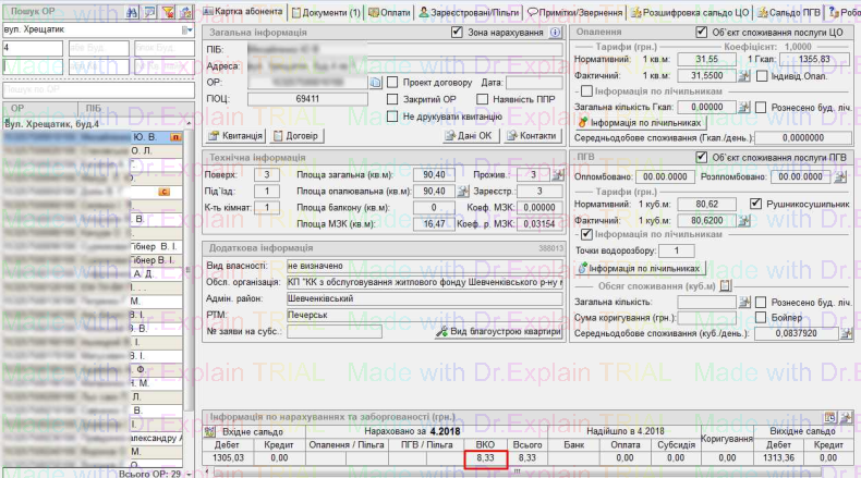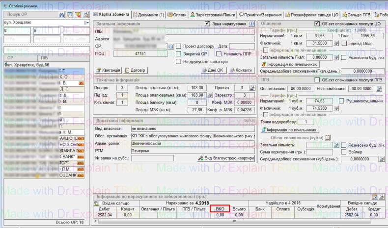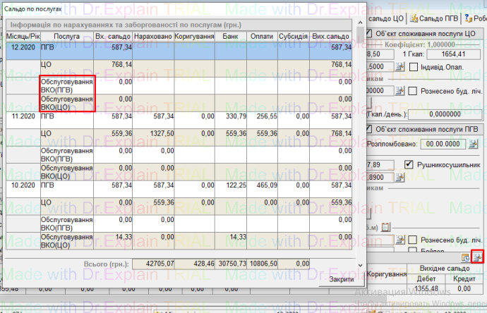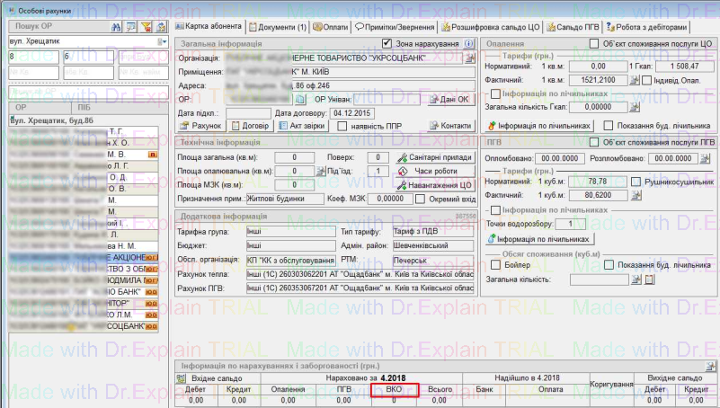 У картках особових рахунків відображено інформацію про нарахування по послузі ВКО: