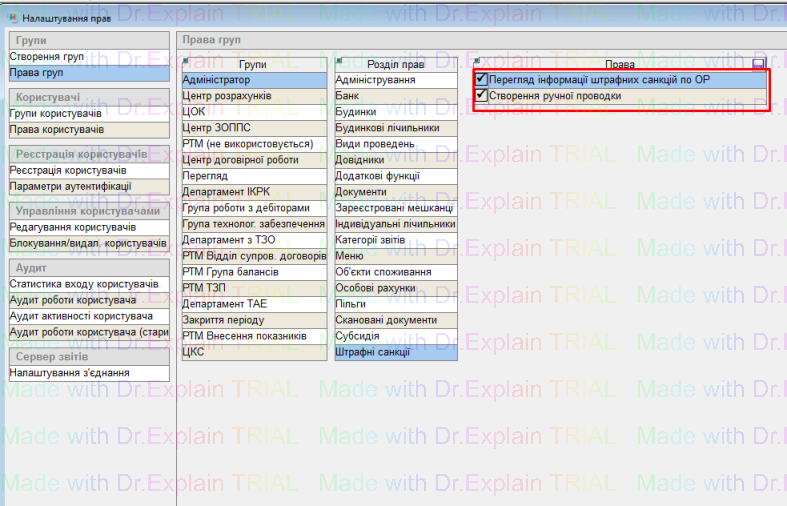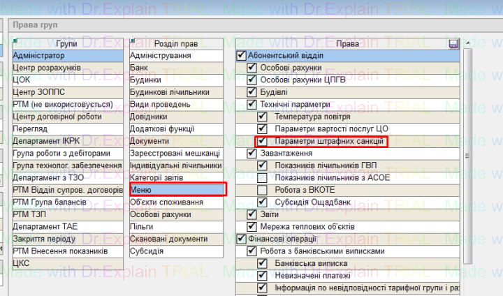 1. Для перегляду інформації та редагуванню штрафних санкцій по абонентам, спочатку потрібно надати відповідні права користувачу: