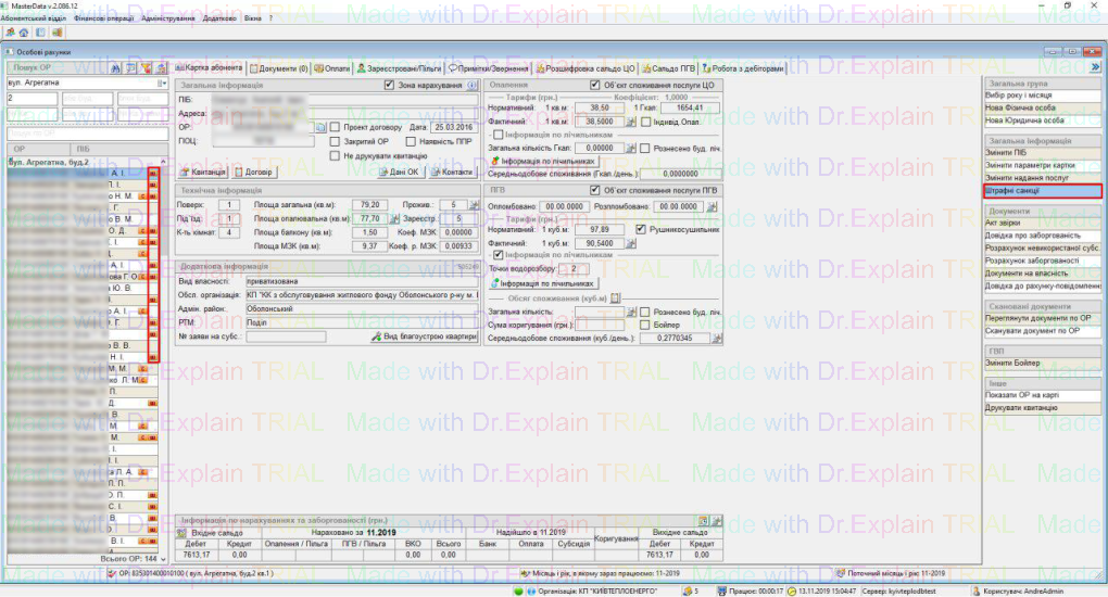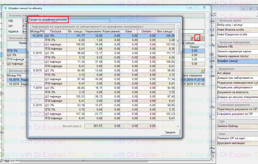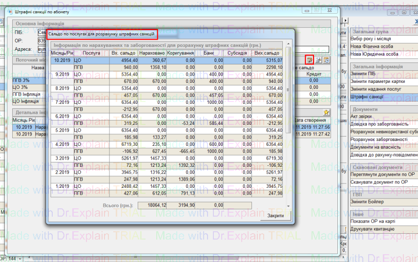 - Сальдо по послугах для розрахунку штрафних санкцій