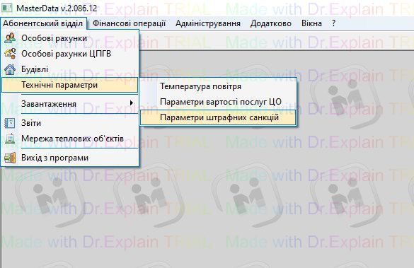 далі: Абонентський відділ – Технічні параметри – Параметри штрафних санкцій