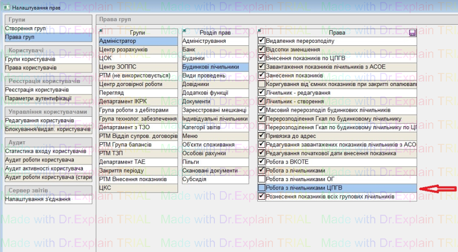 1) Права для роботи з лічильниками ЦПГВ