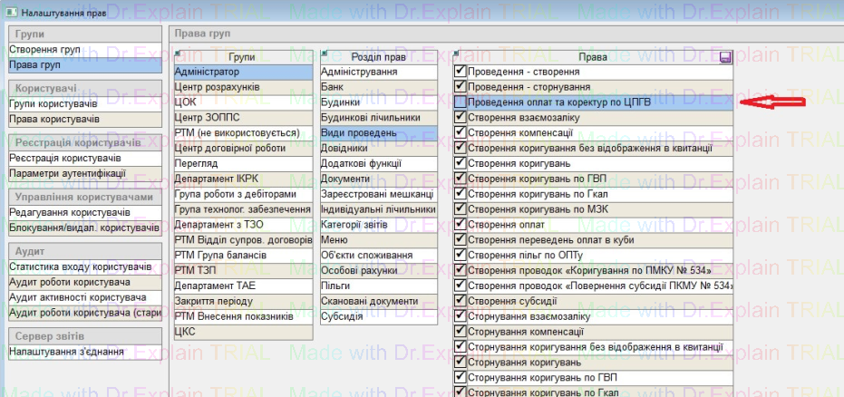 3) Права для проведення оплат та коректур по ЦПГВ