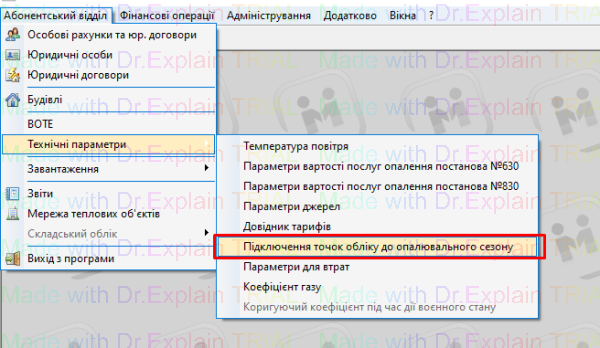 Абонентський відділ — Технічні параметри — Підключення точок обліку до опал.сезону: