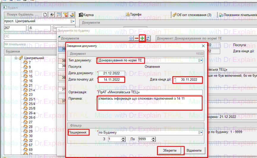 відкриється вікно “Документи по будинку”, натиснути “плюс”;