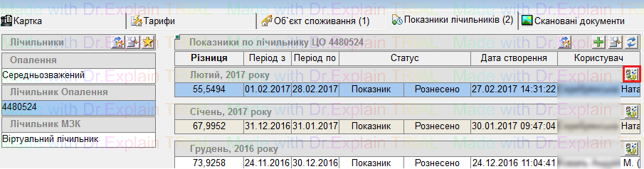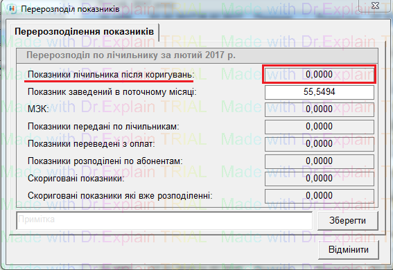 і у "Показниках по лічильнику" буде відображена нова строчка "Редагування-Перерозподіл", цей перерозподіл можна сторнувати (нажати кнопку мінус "-").